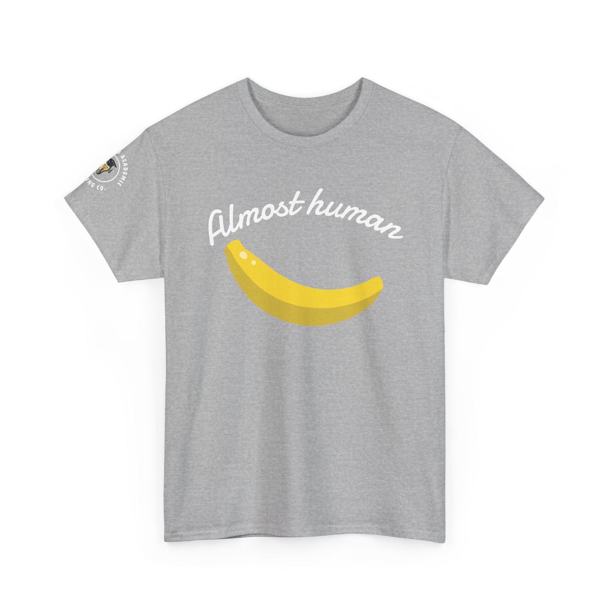 This Unisex Heavy Cotton Tee is designed to bring a touch of humor and personality to your everyday wardrobe. Featuring a playful banana illustration alongside the phrase 'Almost human', this shirt is sure to spark smiles and conversations. It's perfect for casual outings, gatherings with friends, or lounging at home while still looking stylish. Whether you’re a lover of quirky fashion or just enjoy a good laugh, this tee is for you! It makes a great gift for birthdays, casual celebrations, or just because. Ideal for both artists and fun-loving individuals, it's designed to fit into any setting, from coffee shop meet-ups to weekend adventures.